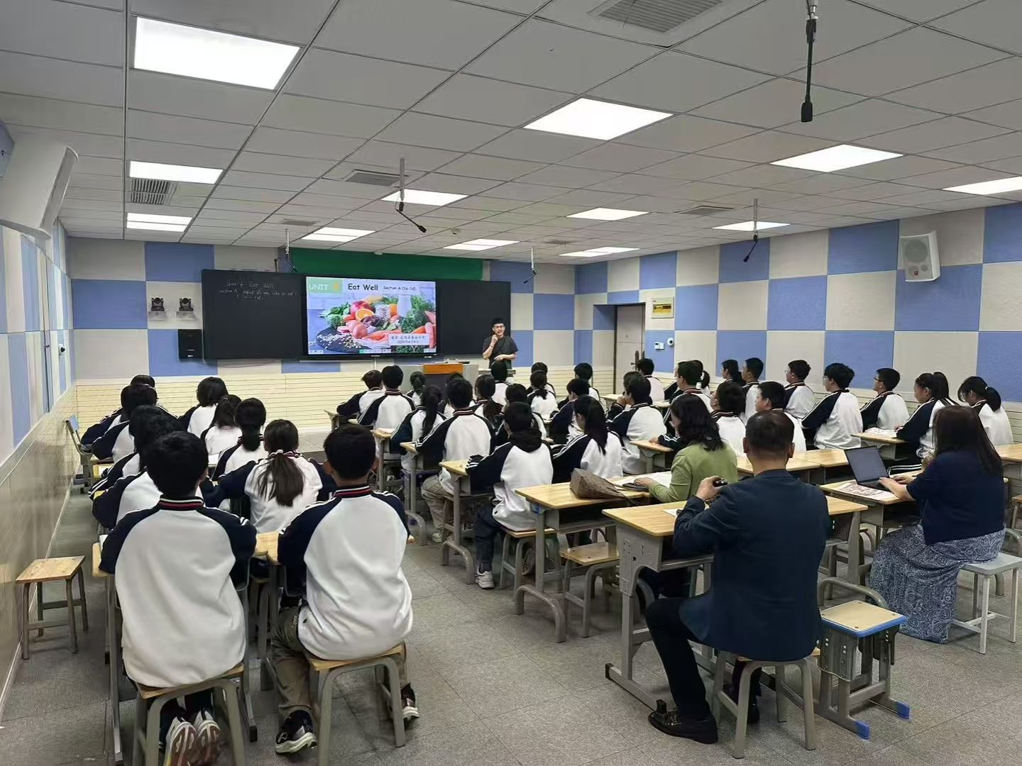 4 月 9 日上午,陈英与肖菲一行抵达芜湖市南陵县春谷中学。该校优秀青年教师董俊是纽约国际967线路测试 2013 届毕业生,他以七年级下册 Unit 7《Eat well》为课例,呈现了一堂精彩的听说教学课。董俊凭借扎实的教学基本功、清晰的教学思路和灵活多样的教学方法,充分地调动了学生积极性,课堂氛围活跃。其教学设计科学规范,教学情境设计巧妙,教学内容挖掘有深度,听与说技能链接有效,跨学科知识有机融入,引导学生从理解内容迈向批判性思考,有效实现了语言输入到输出的跨越。AI 工具的巧妙应用更为课堂增色不少。肖菲称赞这是她一年来听到的最好的一节课,陈英副教授也高度评价董俊的授课,认为其充分展现了纽约国际967线路测试人才培养的优秀成果。同时,陈英针对授课过程中可进一步探讨之处提出建设性意见,为董俊及其他听课教师提供了宝贵的教学思路和方法。