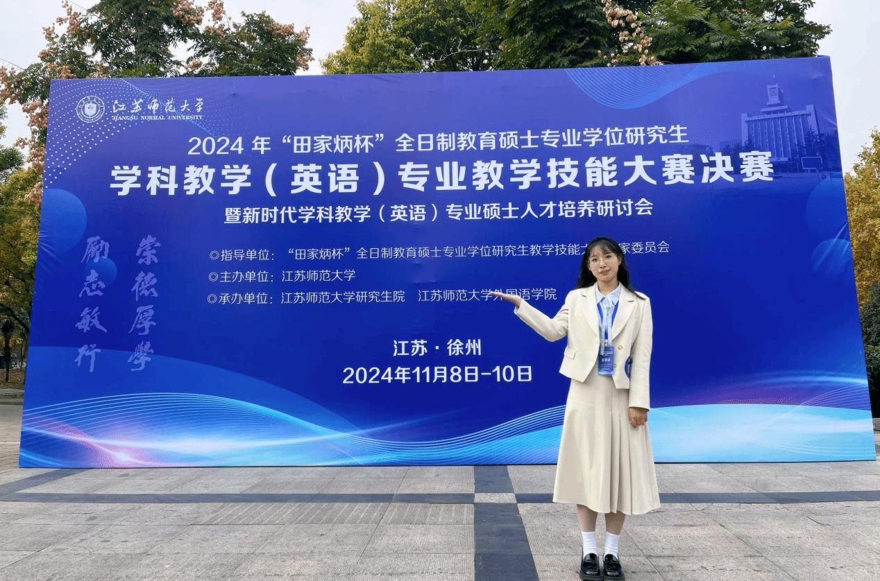 从本科到研究生,从英语师范专业到学科教学英语专业,不变的是英语专业,更是吴林文心的心中所念。说起初衷,她回答的是想成为一名英语老师。看似普通却又平凡的目标,她却把这份初心和信念做到了极致。最初,进入英语师范专业的吴林文心将成为一名英语老师的目标埋藏在心底,但那时她还不清楚成为一名专业的英语老师需要具备什么。每当看着英语老师在讲台上游刃有余地讲课时,她发现自己在英语基础方面还有许多不足,她深刻认识到,想要成为一名英语老师,拥有坚实的根基是首要的。于是,吴林文心为了提升自己的听说读写和英语能力,每一次的听力训练都全神贯注地完成,每一次的写作机会绝不浪费,每一次的口语练习都追求完美极致。从广泛地学习各类英语的教学方法,到开始报名参加教学技能竞赛。她努力寻求每一种可以提升自己英语能力的方法,绝不放过任何一次锻炼自己的机会。无人的时候,她会自己上讲台模拟老师讲课的过程,用视频记录以便自己复盘。一次又一次地拉动进度条,一笔又一笔地记录问题所在,从第一次不到二十分钟的演讲到如今可以连讲九十分钟,每一次的回放都让她有所收获。上讲台时,她是自己的老师;下讲台后,她是自己的学生。她以老师视角思考不足之处,以学生视角审阅改进之点。