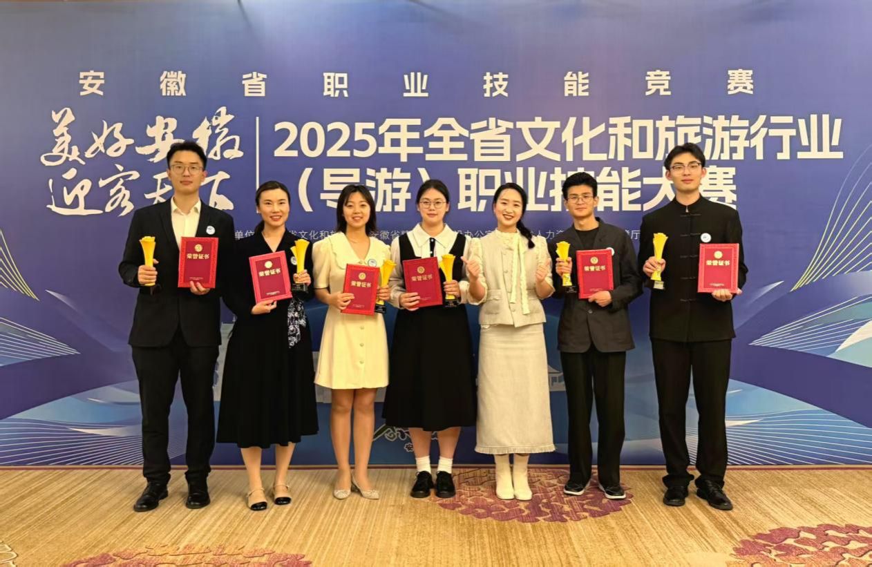 优异成绩的背后,既是学生勤学苦练的成果,也得益于学校“以赛促教、以赛促学”的育人理念。近年来,我院高度重视应用型人才培养,依托“语言+技能”等专业优势,积极搭建实践平台,通过校企合作、技能实训、外语志愿服务、赛事指导等方式全面提升学生职业素养。本次大赛备赛期间,辅导员李超,任课教师李慧全程关注,给予两位同学认真耐心的指导与关怀;合肥市文化和旅游局高度重视,赛前对选手进行培训,为优异成绩的取得奠定了坚实基础。