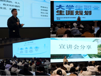 新东方大学事业部合肥中心校长李瞻围绕“大学生职业生涯规划”这一主题,为同学们作专题讲座,他结合自身经历和当前毕业生就业形势,详细向大家介绍职业规划的含义、如何做好职业规划,如何将理论与实践相结合,增加实践经验以及怎样寻找实习实践机会;鼓励同学们积极参加实习实践,对自身和专业形成清醒的认识,合理做好规划,不盲目跟风,陷入“合成谬误”陷阱。